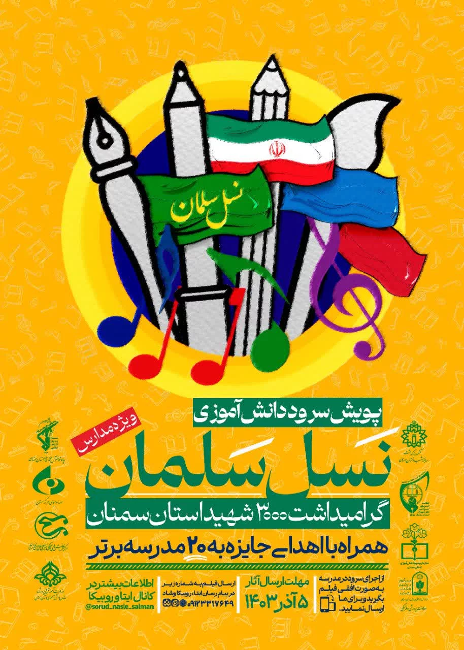 جهت کسب اطلاعات بیشتر شیوه نامه ی مندرج در ادرس  @sorud_nasle_salman  در پیام رسان ملی ایتا و روبیکا را مطالعه فرمایید.
