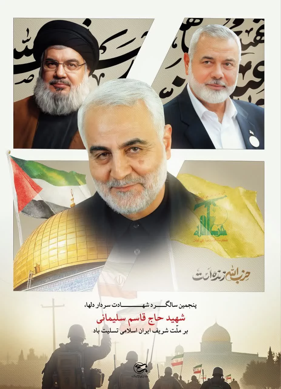 به مناسبت گرامیداشت پنجمین شهادت سپهبدشهید حاج قاسم سلیمانی لوح «حزب الله زنده است » در مرکز آفرینش‌های فرهنگی هنری بسیج استان همدان تهیه شده است .