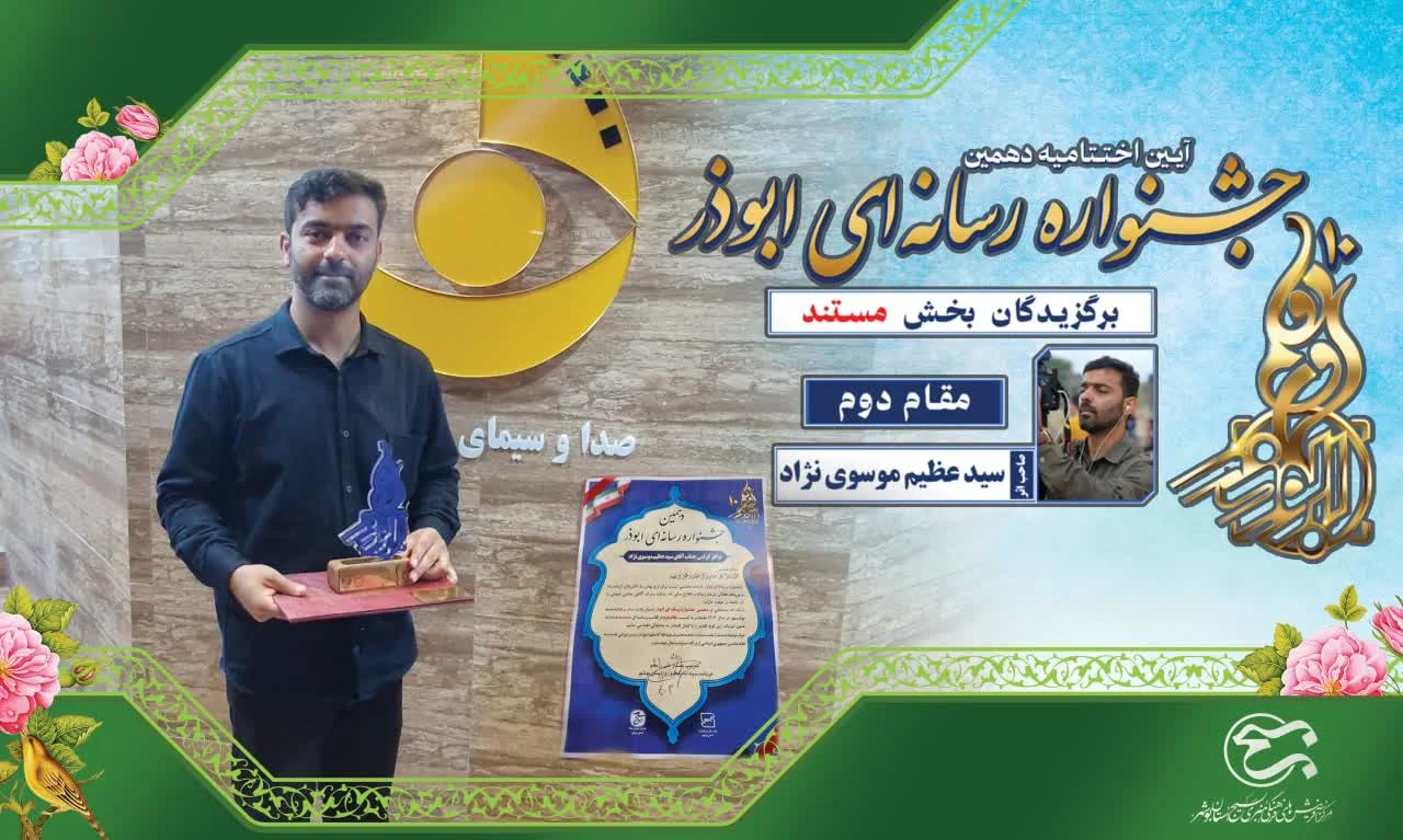 در دهمین جشنواره ابوذر استان بوشهر، آقای سیدعظیم موسوی نژاد در بخش “مستند” موفق به کسب رتبه دوم شدند.