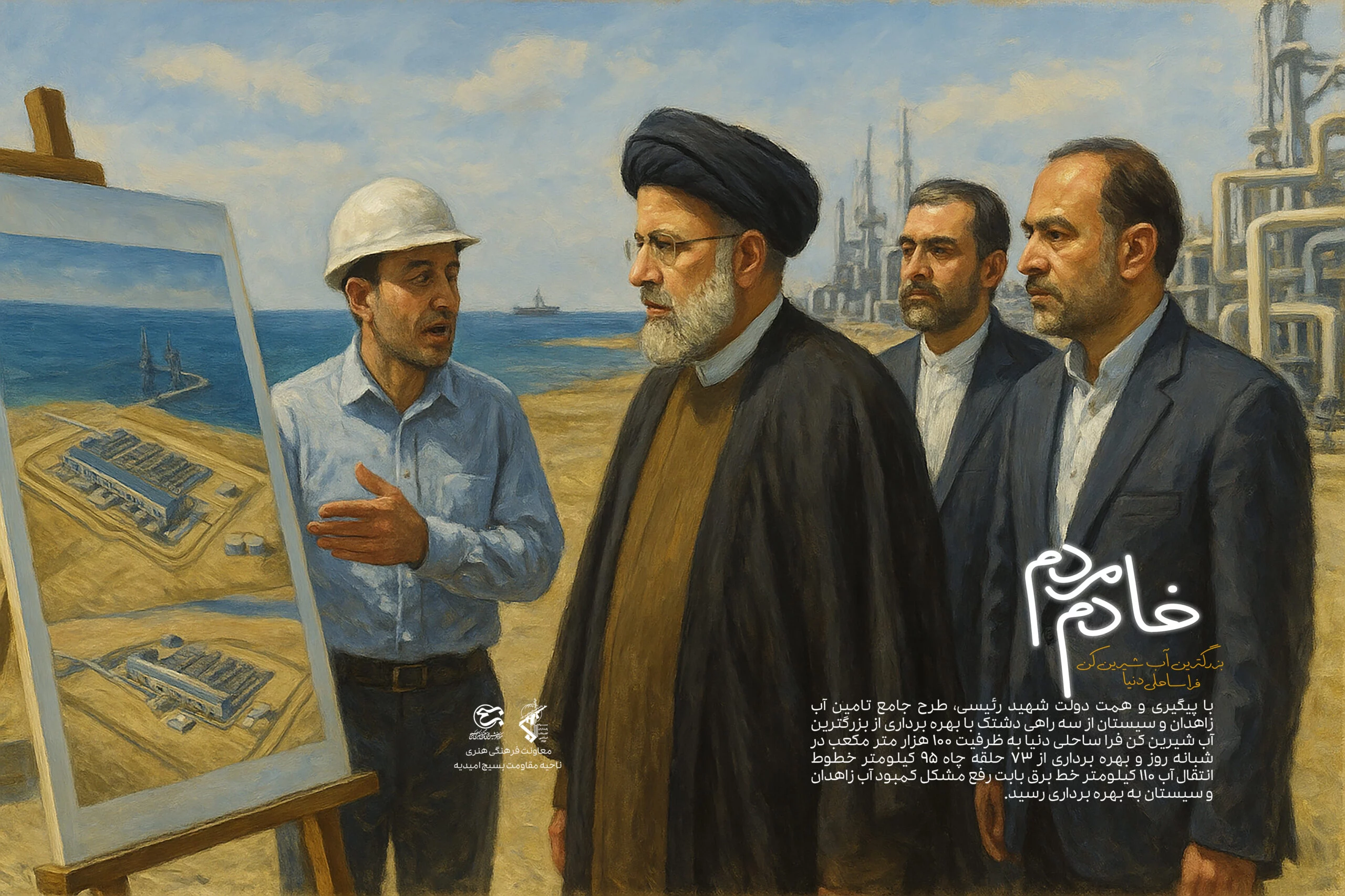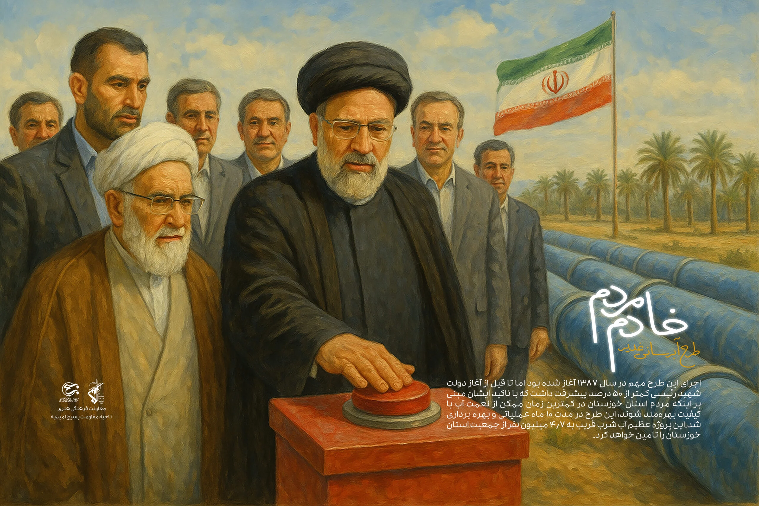 سیر نمایشگاهی « خادم مردم » ویژه رئیس جمهور شهید آیت الله رئیسی این اثر در مرکز آفرینش‌های فرهنگی هنری بسیج استان خوزستان تولید شده است .